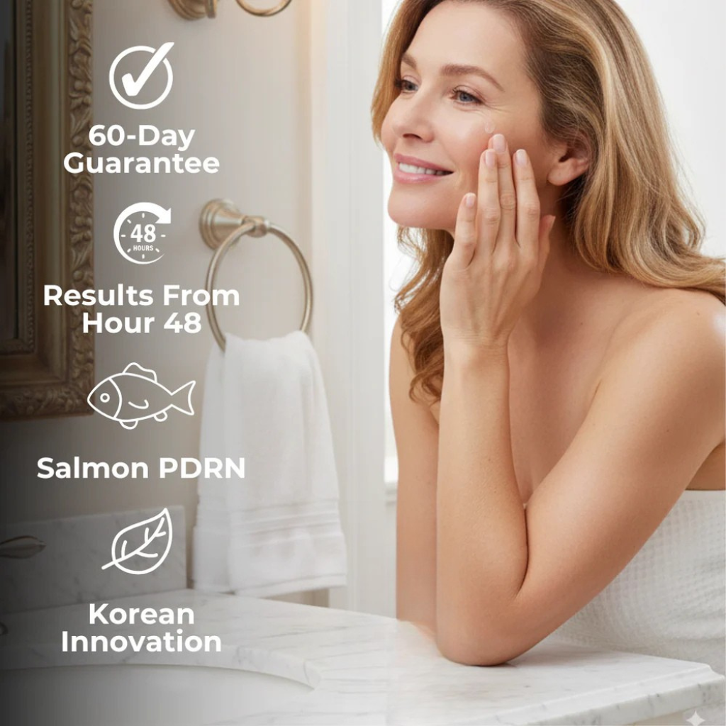 OVENZIA uses 15 million high-purity exosomes and 99% pure Salmon PDRN, ingredients normally found in professional aesthetic clinics. This unique formula delivers micro-needling-like results — no devices, no irritation.